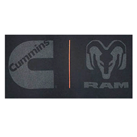 Subtle Cummins and Ram logos on black t-shirt.